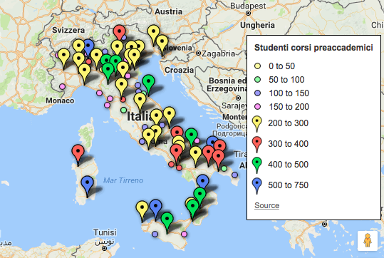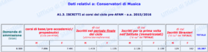 Il confronto segnala un lieve incremento degli iscritti ai corsi pre-accademici (15.672), con i 747 di Cosenza: