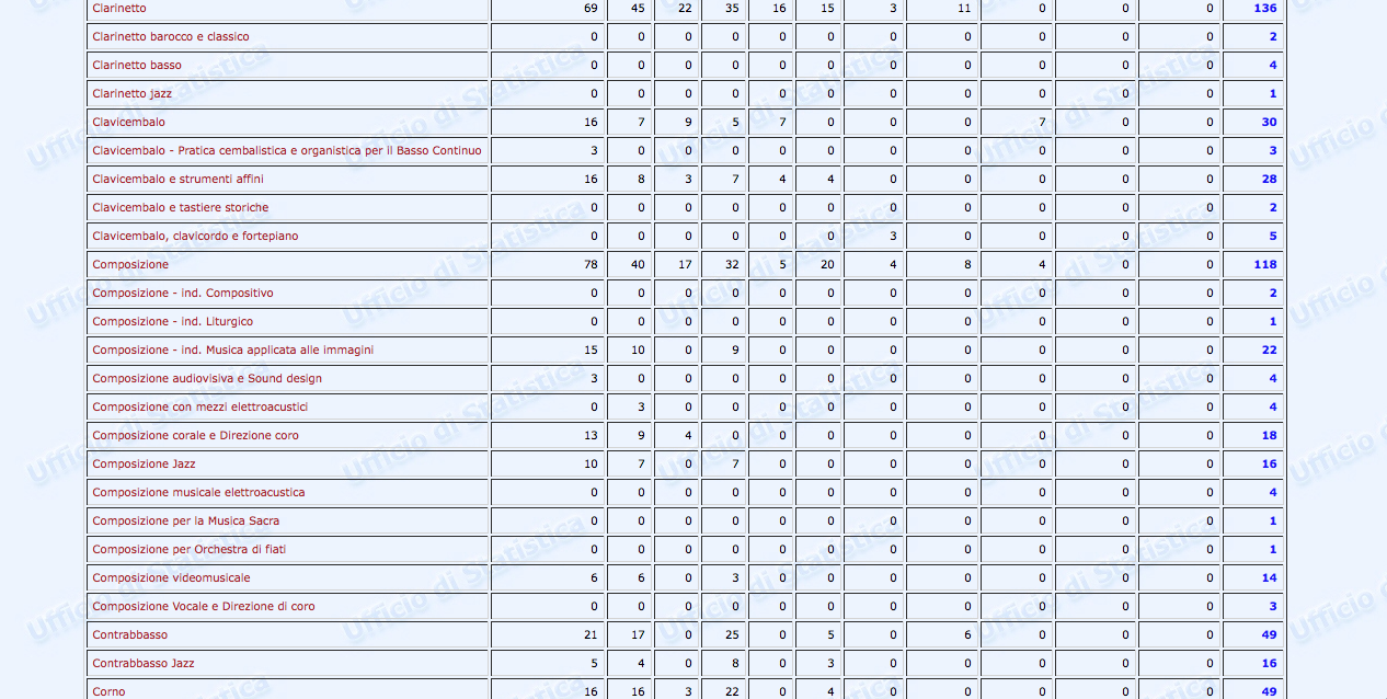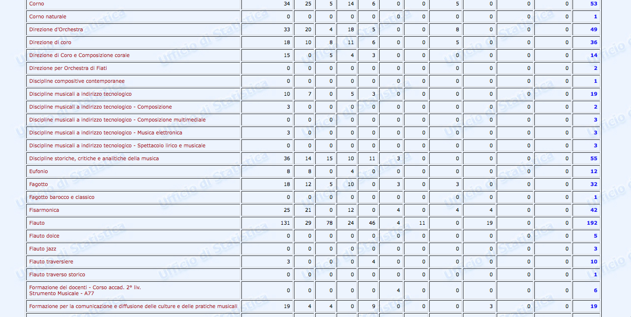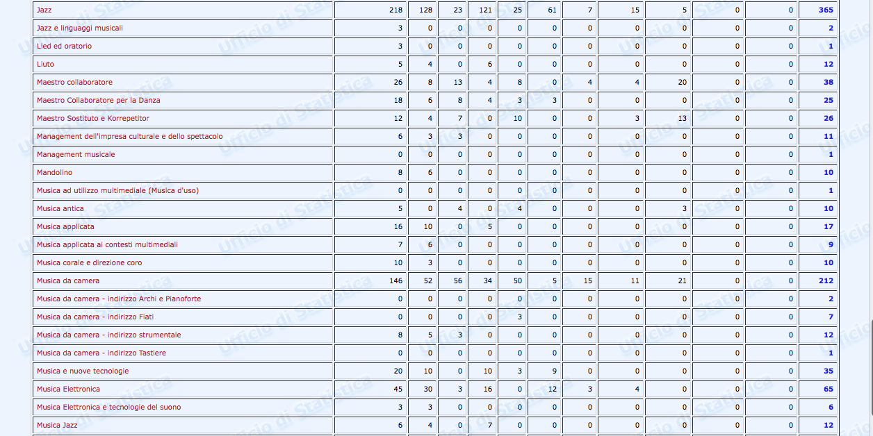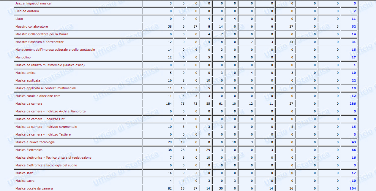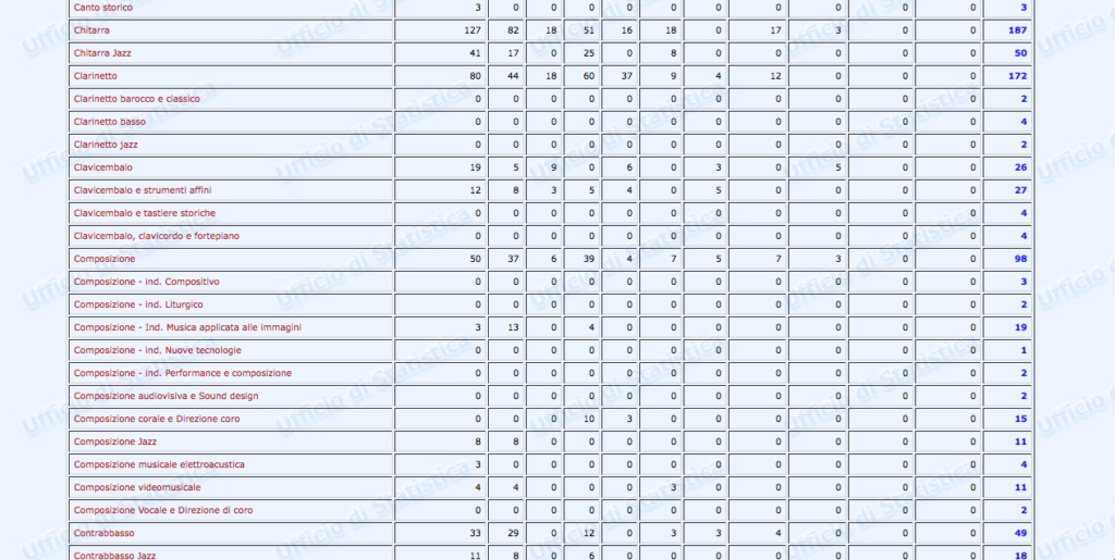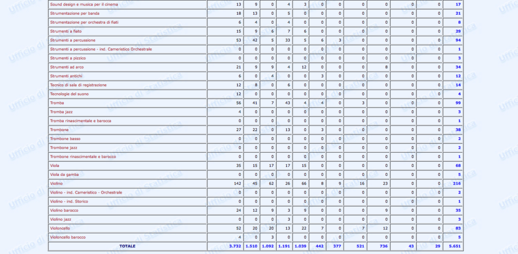 Sono stati finalmente pubblicati i dati statistici relativi al settore Afam per l’a.a. 2016/2017. Non però sul nuovissimo sito ustat.miur.it inaugurato il 9 marzo scorso (il c.d. Portale dei dati dell’Istruzione Superiore), ma piuttosto sul vecchio statistica.miur.it.