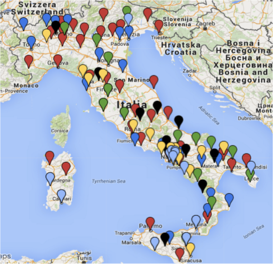 A oggi 25 febbraio, ma il quadro è chiaramente suscettibile di aggiornamenti, le iniziative di cui si dà conto sono circa 160; la tabella contiene però complessivamente 76×14= 1064 campi, la stragrande maggioranza dei quali sono dunque vuoti.